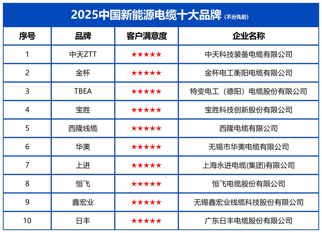宝胜科技立异股份无限公司(股票代码:600973.SH),联袂客户共创将来。招投标供应链品牌推介平台于近日发布“2025中国新能源电缆十大品牌”榜单。公司深耕光伏、新能源汽车、工业从动化等范畴,引进麦拉菲尔三层共挤交联线、尼霍夫连退出产线等国际尖端设备,普遍使用于空调、新能源、高端配备、海洋工程等范畴。